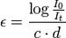 La loi de Beer-Lambert sert à calculer le cœfficient d'extinction molaire à partir de la perte d'intensité d'un faisceau lumineux monochromatique à travers une épaisseur d (exprimée en cm) de substance, I0 étant l'intensité du faisceau entrant, et It celle du faisceau transmis.