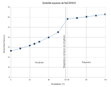 - ... expérience, produit chimique. Une solution saturée d'acétate de sodium ne demande qu'à précipiter. Énormément de vidéos circulent sur ... (source : spc.ac-aix-marseille)