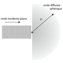 Dans l'hypothèse d'une diffusion élastique, l'onde incidente (de vecteur d'onde ) et l'onde diffusée (de vecteur d'onde