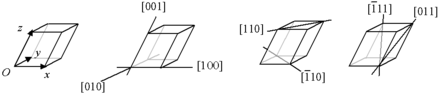 - [111] (ou l'opposé [111]) et [111] (ou l'opposé [111]) désignent les deux autres diagonales ;