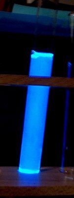 Le luminol est un produit chimique présentant une chimiluminescence, avec un éclat bleu caractéristique, quand il est mélangé avec un oxydant correct.