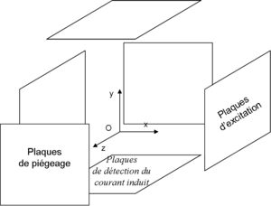 L'analyseur à résonance cyclotronique d'ion se compose d'une cellule ICR (de configuration cubique par exemple) qui comporte surtout six plaques sous tension, isolées les unes des autres.