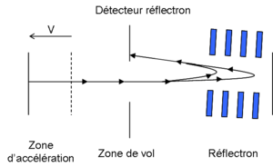 L'analyseur à temps de vol consiste à mesurer le temps que met un ion, accéléré préalablement par une tension, à parcourir une distance donnée. Le rapport masse sur charge est directement mesurable à partir du temps de vol.